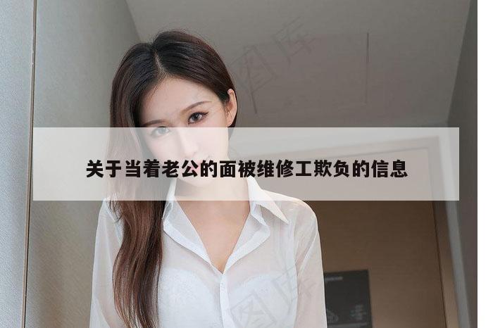 本篇文章给大家谈谈当着老公的面被维修工欺负,以及对应的知识点,希望对各位有所帮助,不要忘了收藏本站喔。澳门彩色高清跑狗图:1、当着老公的面被维修工欺负怎么办2、倘若当着老公的面遭遇别人欺负该怎么处理呢3、在老公面前被维修工欺负了应该采取什么行动当着老公的面被维修工欺负怎么办涉及婚姻信任维护时,...